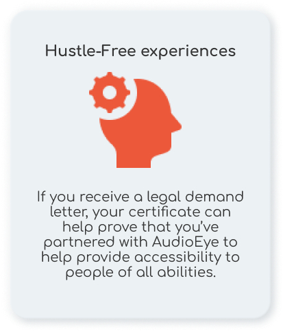 Every customer with the Trusted Certification is making an ongoing commitment to digital accessibility through continuous, AI-based monitoring, regularly scheduled Expert Audits, and tools and support to optimize the user experience for people of all abilities.