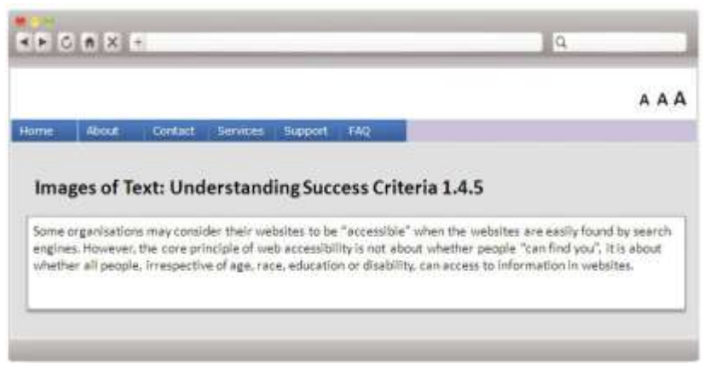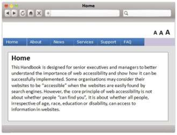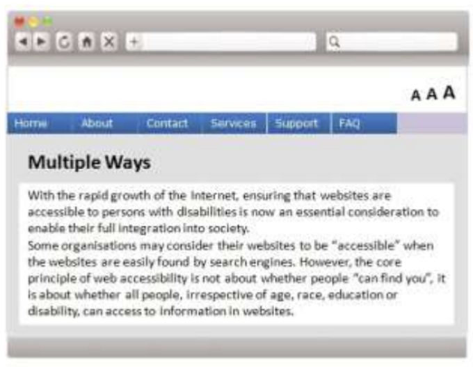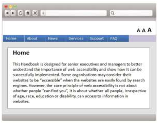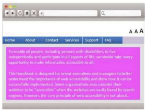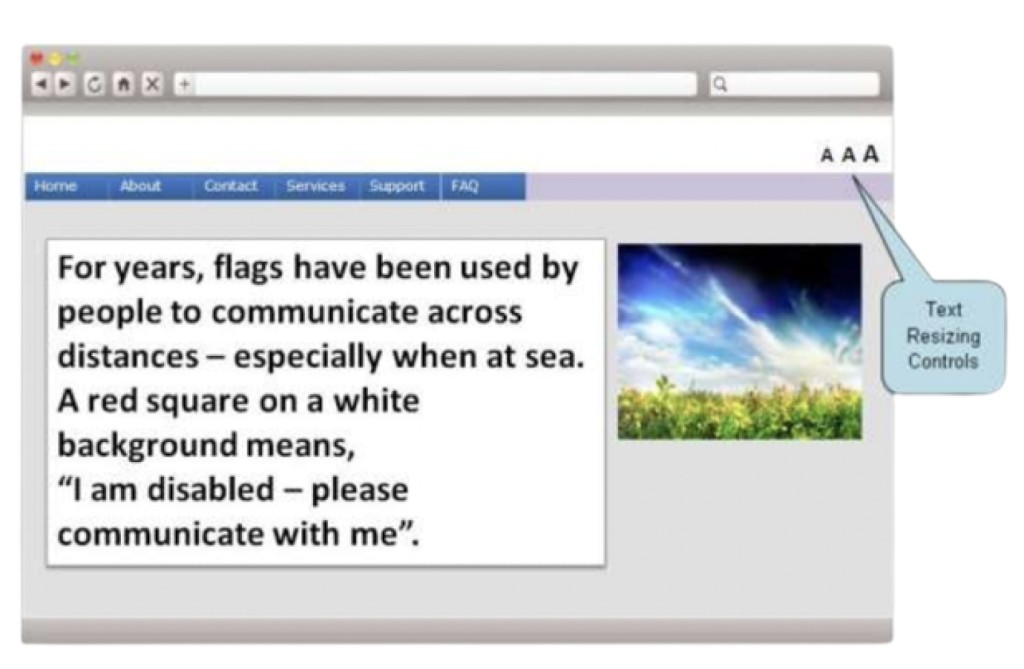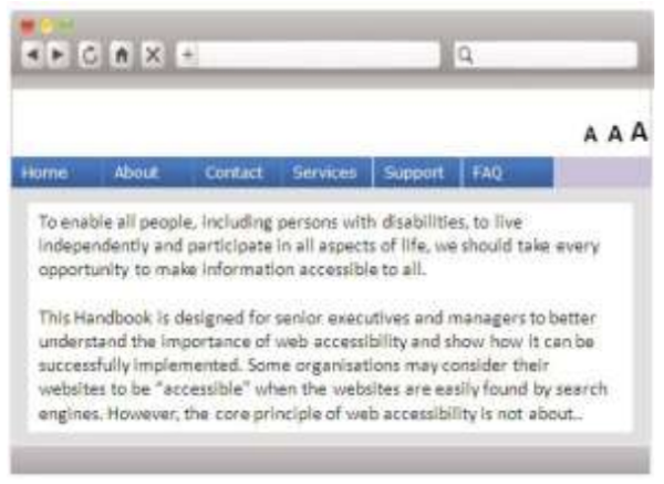 It is a good practice to provide functions within a website that allow users to enlarge the font size.