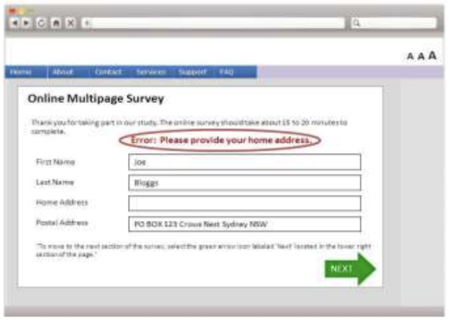 In contrast, this example shows a message that is located at the top of the webpage and provides a good explanation of what needs to be corrected.