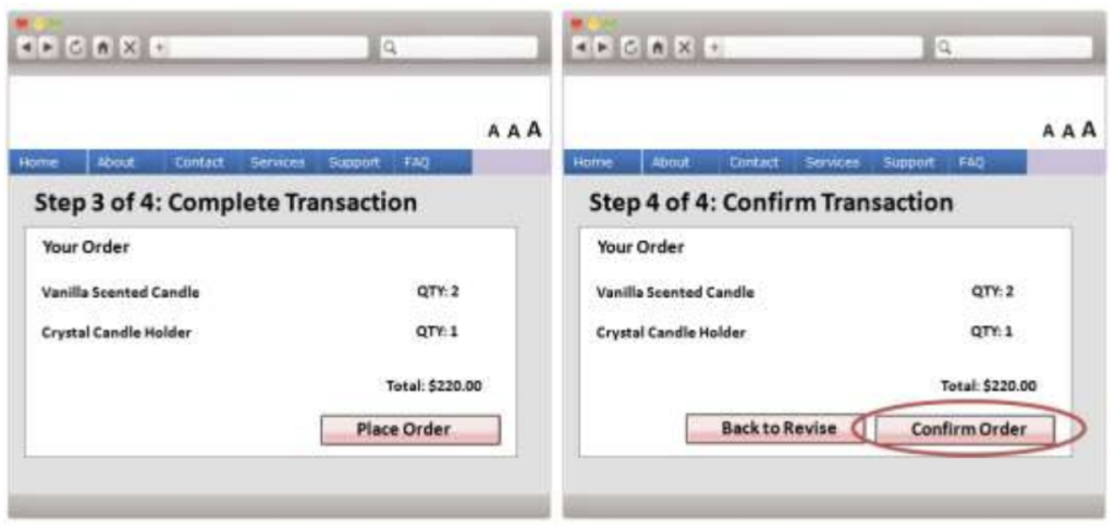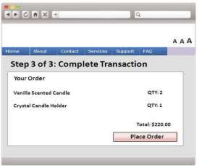 This screen indicates the last step of a transaction, in which the user is forced to place the order without a confirmation process.
