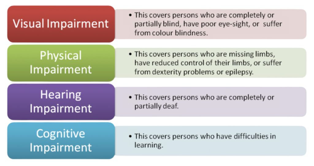 Examples of disabilities and the ways to overcome the constraints are outlined below.