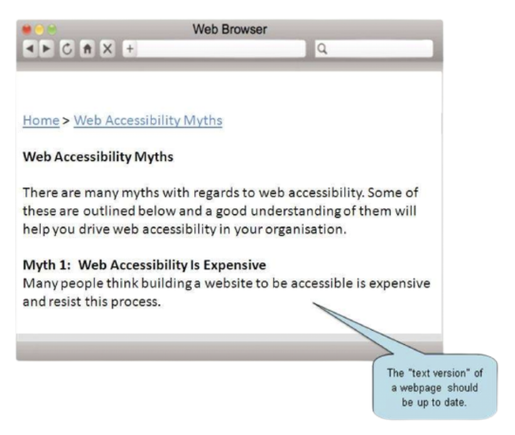 Text versions of websites are often neglected, particularly as website changes take place over time.