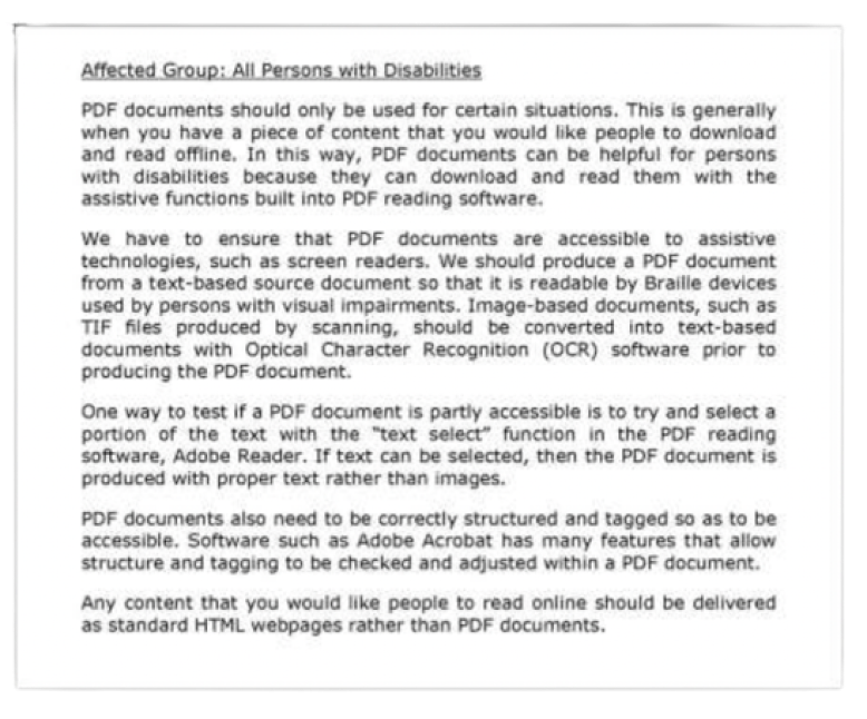 By adopting relevant guidelines when designing websites to cater for the needs of persons with disabilities, you are making your website more userfriendly, maximising your customer base and showing that you are an organisation that cares.