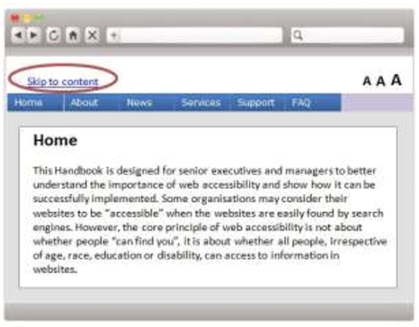 Ensure users can skip past other blocks such as lengthy navigation bars.