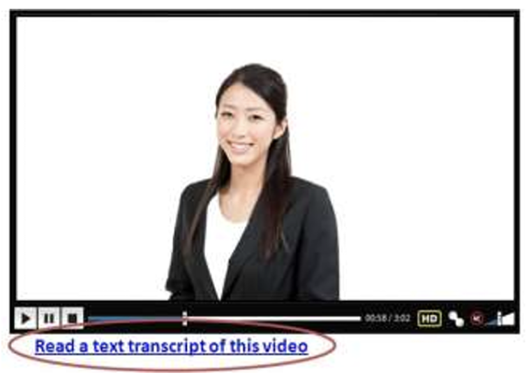 This can be as simple as providing a text transcript of the audio content or subtitles on the video. A text transcript has an added advantage for persons with visual impairment as well.