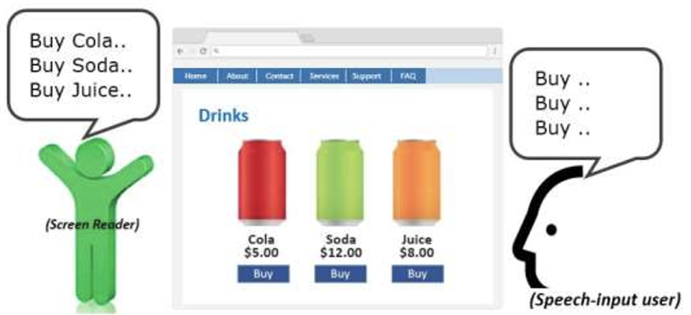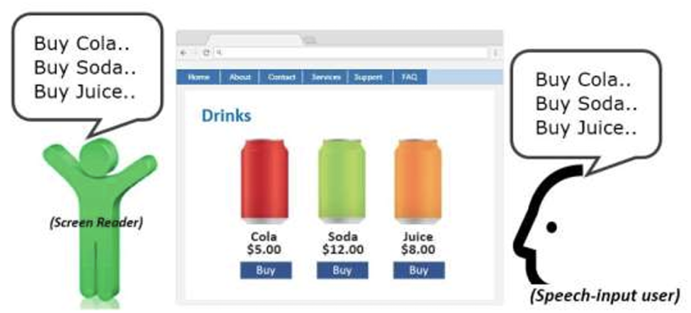 Voice Control Tools – some severe motor disabilities leave using voice commands as the only means to interact with a website. People speak into a microphone with commands such as “next link”, “go”, etc. 